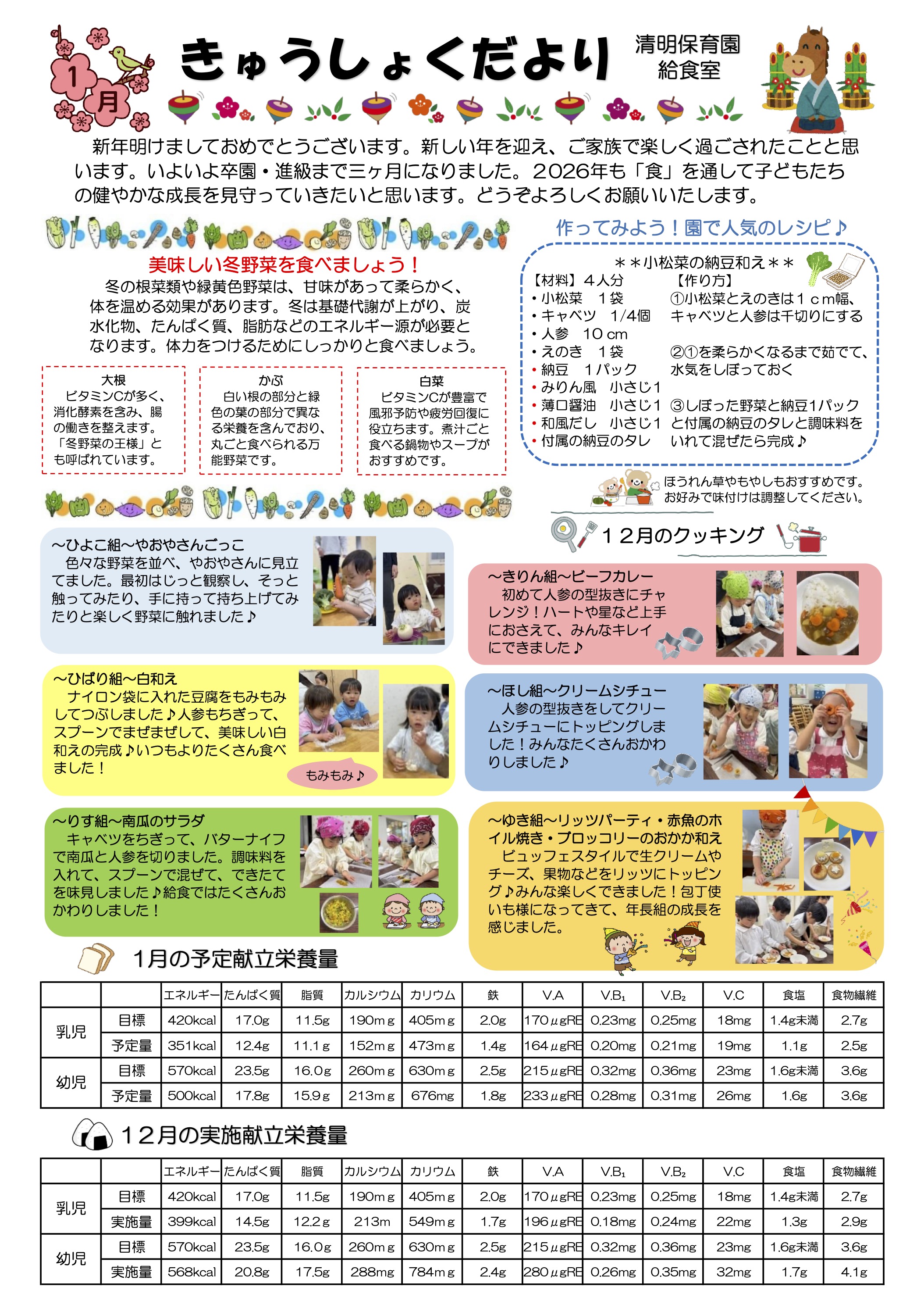 清明保育園 給食室からの「きゅうしょくだより」